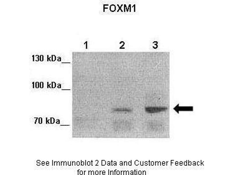 - This is a rabbit polyclonal antibody against FOXM1. It was validated on Western Blot using a cell lysate as a positive control.