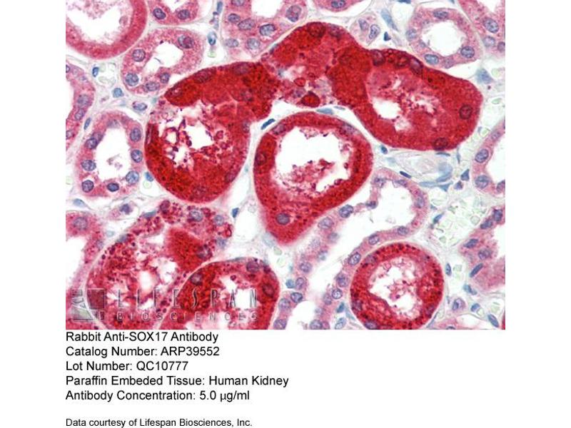 - The immunogen is a synthetic peptide directed towards the middle region of human SOX17