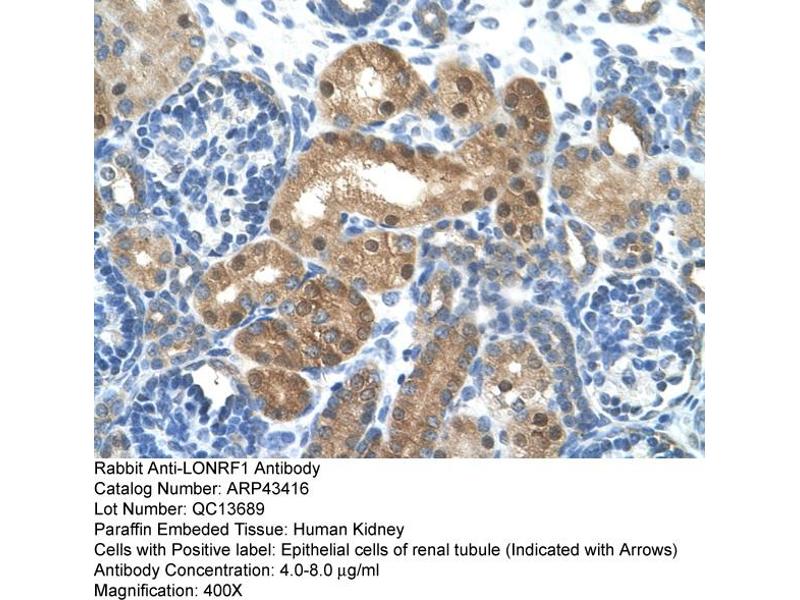 - This is a rabbit polyclonal antibody against LONRF1. It was validated on Western Blot and immunohistochemistry.