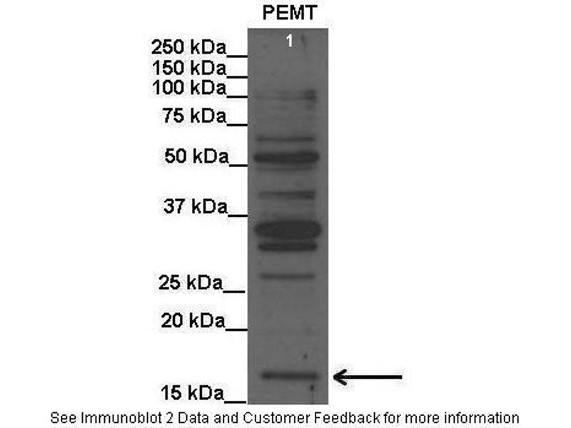 This is a rabbit polyclonal antibody against PEMT. It was validated on Western Blot using a cell lysate as a positive control.