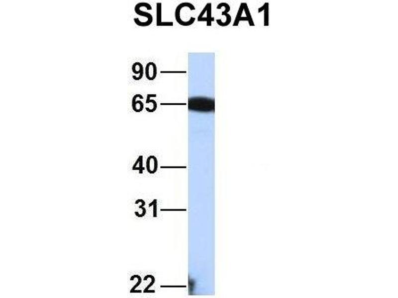 - This is a rabbit polyclonal antibody against SLC43A1. It was validated on Western Blot using a cell lysate as a positive control.