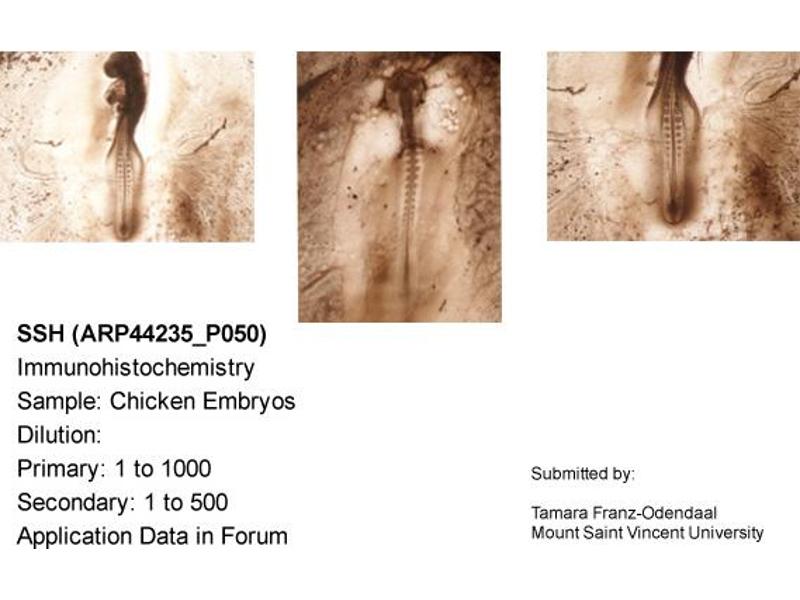 - The immunogen is a synthetic peptide directed towards the N terminal region of human SHH
