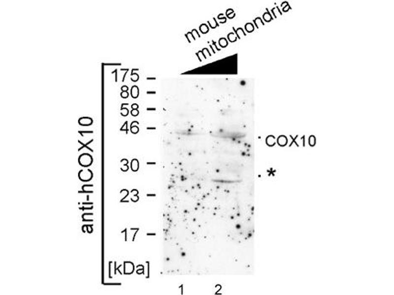 - This is a rabbit polyclonal antibody against COX10. It was validated on Western Blot using a cell lysate as a positive control.