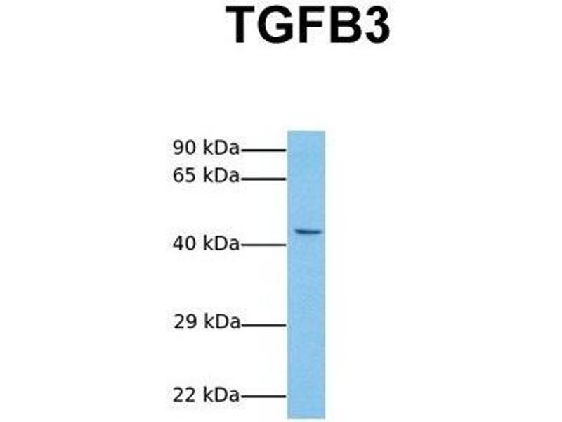 - This is a rabbit polyclonal antibody against TGFB3. It was validated on Western Blot using a cell lysate as a positive control.