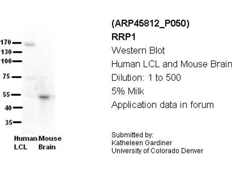 - This is a rabbit polyclonal antibody against RRP1. It was validated on Western Blot and immunohistochemistry.