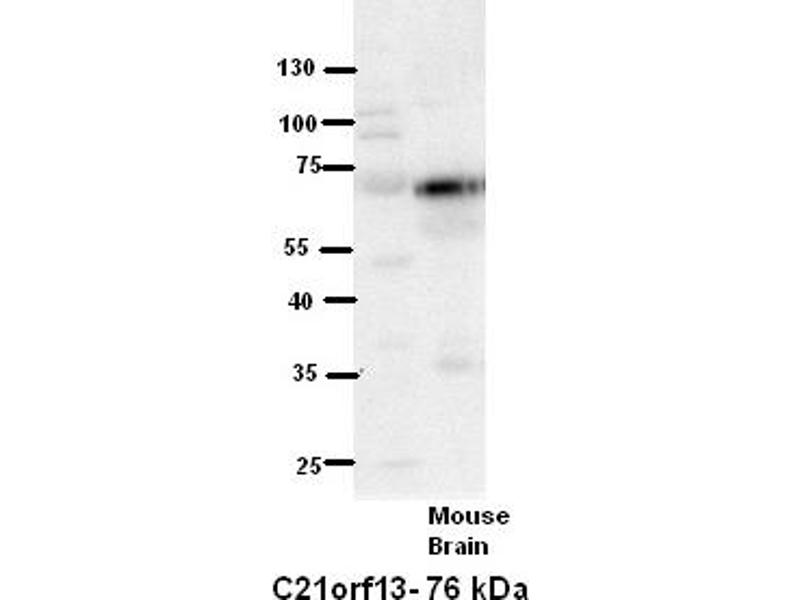 - This is a rabbit polyclonal antibody against C21orf13. It was validated on Western Blot using a cell lysate as a positive control.