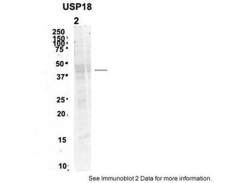 - The immunogen is a synthetic peptide directed towards the N terminal region of human USP18