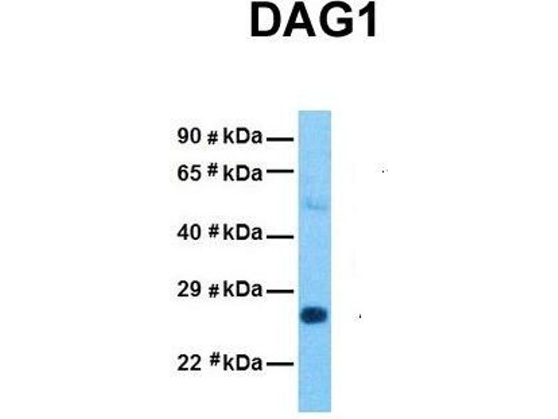 - This is a rabbit polyclonal antibody against DAG1. It was validated on Western Blot using a cell lysate as a positive control.