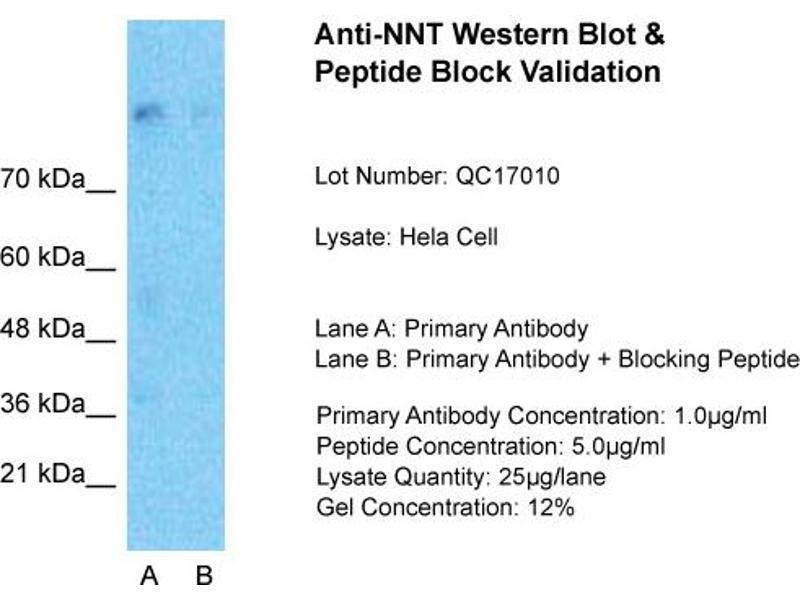 - This is a rabbit polyclonal antibody against NNT. It was validated on Western Blot using a cell lysate as a positive control.