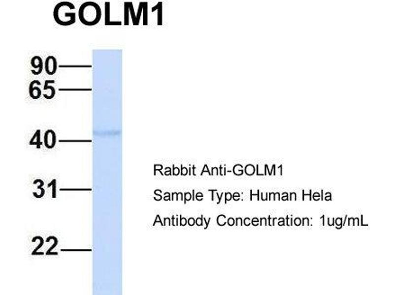 - This is a rabbit polyclonal antibody against GOLM1. It was validated on Western Blot using a cell lysate as a positive control.