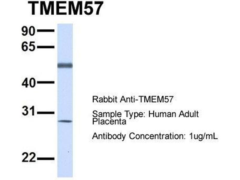 - This is a rabbit polyclonal antibody against TMEM57. It was validated on Western Blot using a cell lysate as a positive control.