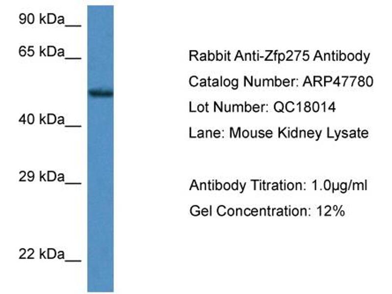 - This is a rabbit polyclonal antibody against Zfp275. It was validated on Western Blot.