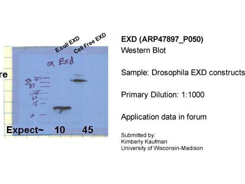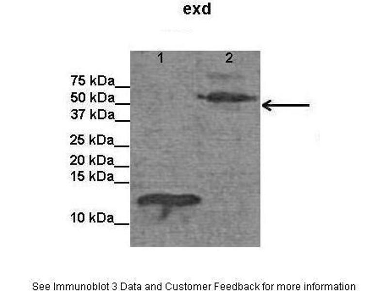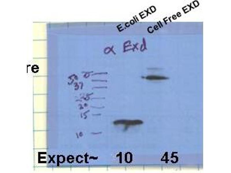 - This is a rabbit polyclonal antibody against exd. It was validated on Western Blot using a cell lysate as a positive control.