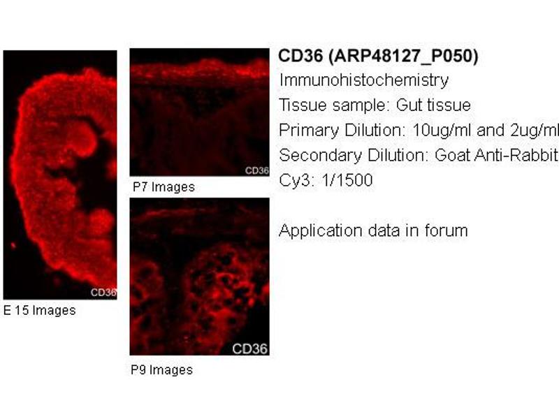 - The immunogen is a synthetic peptide directed towards the N terminal region of human CD36