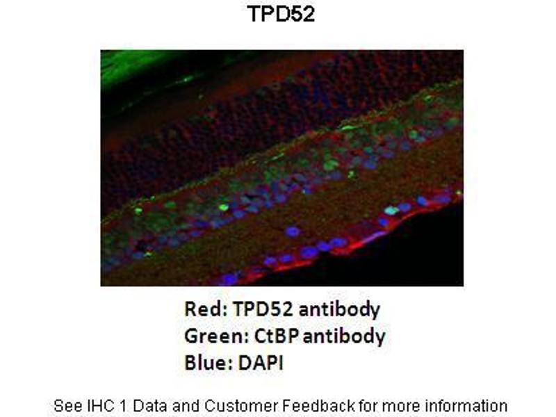 - The immunogen is a synthetic peptide directed towards the middle region of human TPD52