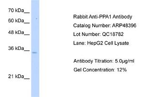 - This is a rabbit polyclonal antibody against PPA1. It was validated on Western Blot using a cell lysate as a positive control.