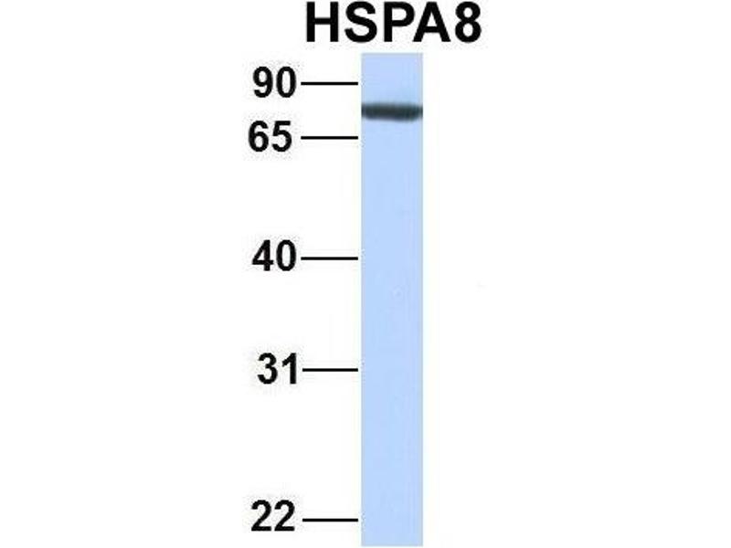- The immunogen is a synthetic peptide directed towards the N terminal region of human HSPA8