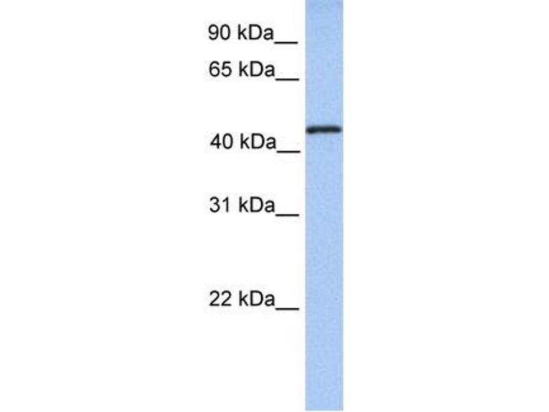 This is a rabbit polyclonal antibody against TRMT11. It was validated on Western Blot using a cell lysate as a positive control.