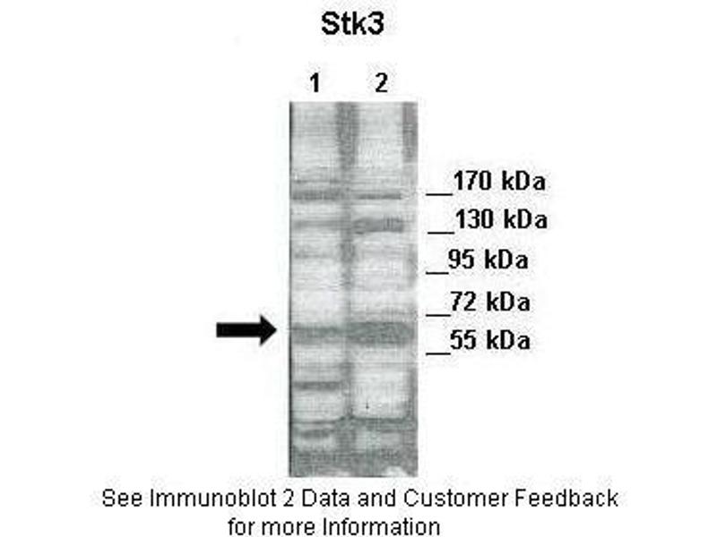 - The immunogen is a synthetic peptide directed towards the N terminal region of human STK3