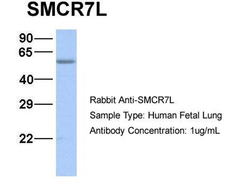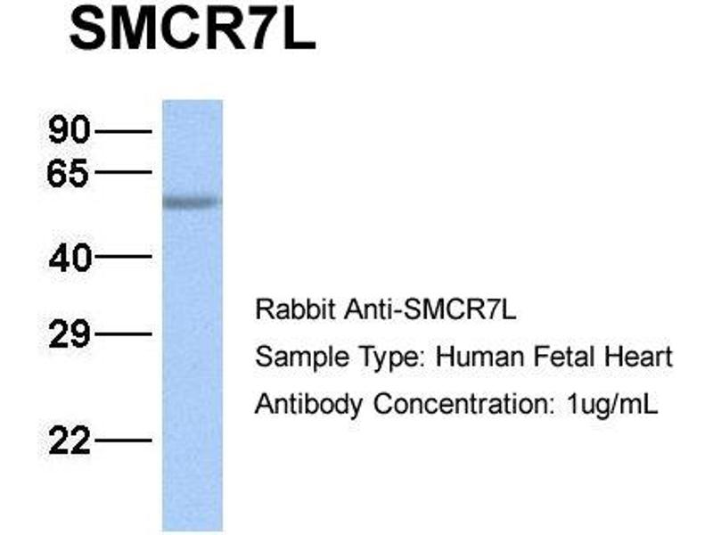 - This is a rabbit polyclonal antibody against SMCR7L. It was validated on Western Blot using a cell lysate as a positive control.