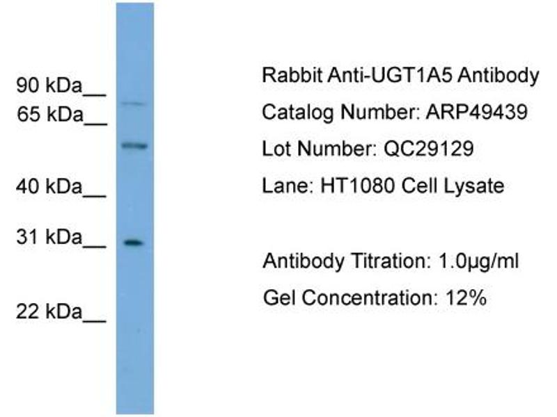- This is a rabbit polyclonal antibody against UGT1A5. It was validated on Western Blot.