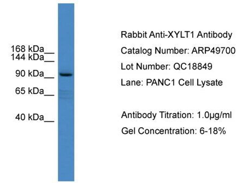 This is a rabbit polyclonal antibody against XYLT1. It was validated on Western Blot.