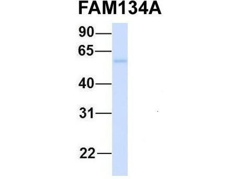 - The immunogen is a synthetic peptide directed towards the N terminal region of human FAM134A