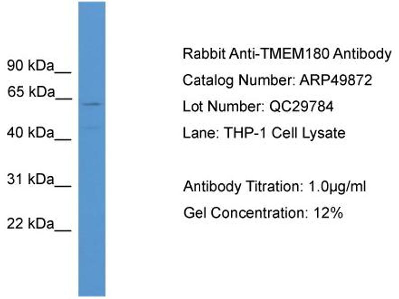 This is a rabbit polyclonal antibody against TMEM180. It was validated on Western Blot.