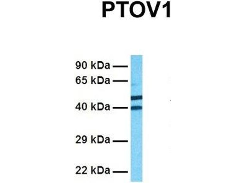 - This is a rabbit polyclonal antibody against PTOV1. It was validated on Western Blot using a cell lysate as a positive control.