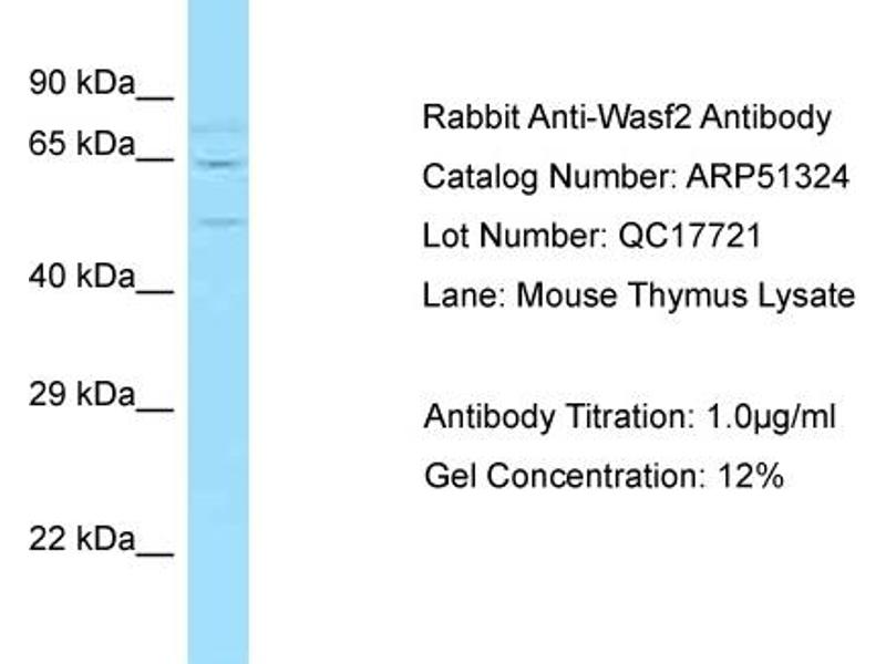 This is a rabbit polyclonal antibody against Wasf2. It was validated on Western Blot.