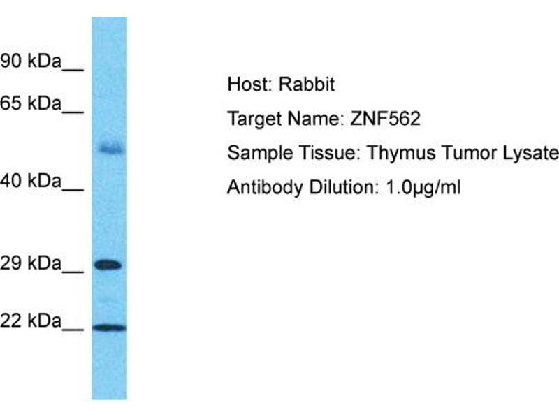 This is a rabbit polyclonal antibody against ZNF562. It was validated on Western Blot.
