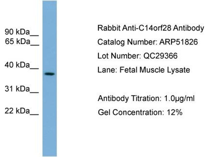 - This is a rabbit polyclonal antibody against C14orf28. It was validated on Western Blot.