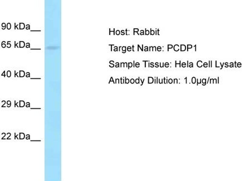 This is a rabbit polyclonal antibody against PCDP1. It was validated on Western Blot.