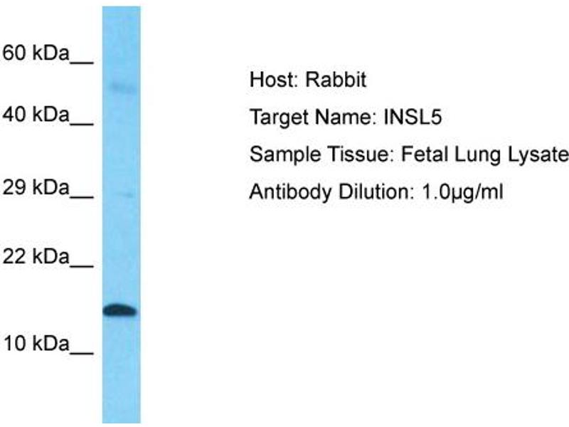 - This is a rabbit polyclonal antibody against INSL5. It was validated on Western Blot using a cell lysate as a positive control.