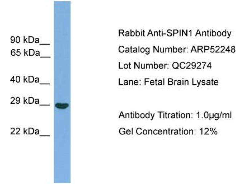 This is a rabbit polyclonal antibody against SPIN1. It was validated on Western Blot.