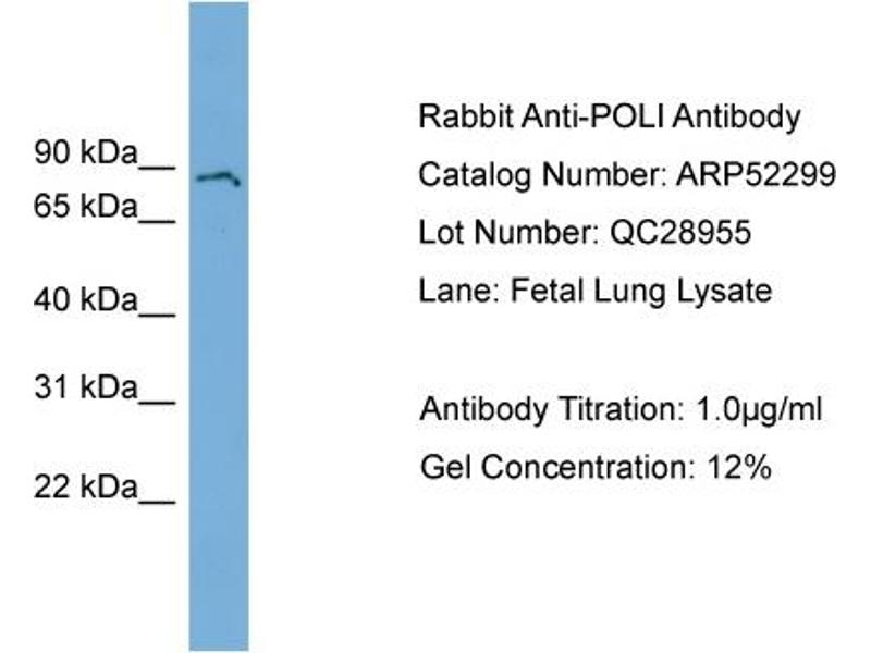 - This is a rabbit polyclonal antibody against POLI. It was validated on Western Blot using a cell lysate as a positive control.