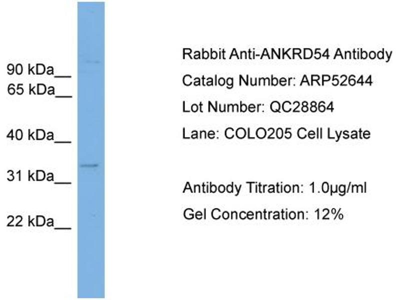 - This is a rabbit polyclonal antibody against ANKRD54. It was validated on Western Blot using a cell lysate as a positive control.