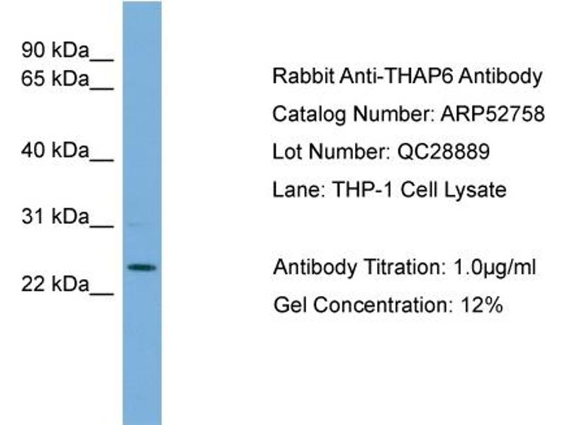 - This is a rabbit polyclonal antibody against THAP6. It was validated on Western Blot.