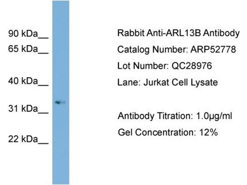- This is a rabbit polyclonal antibody against ARL13B. It was validated on Western Blot using a cell lysate as a positive control.