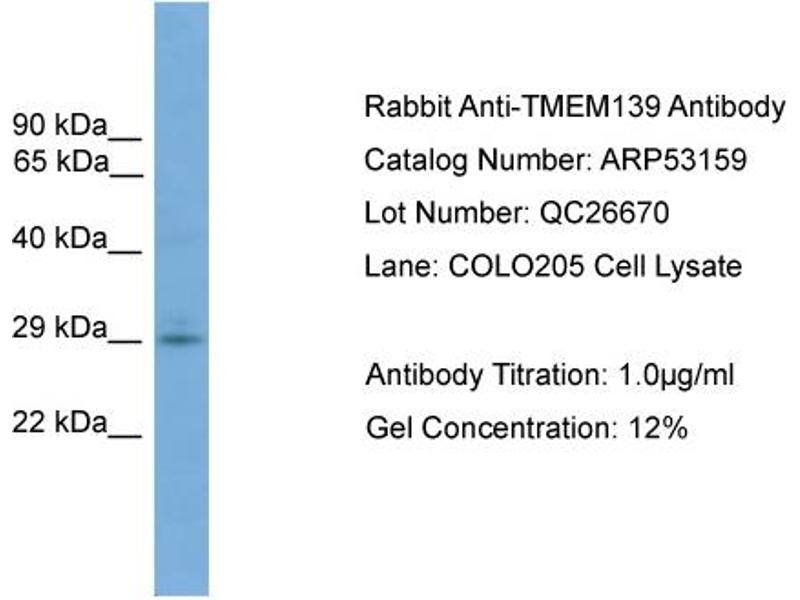 - This is a rabbit polyclonal antibody against TMEM139. It was validated on Western Blot.