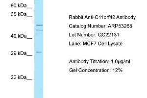 - This is a rabbit polyclonal antibody against C11orf42. It was validated on Western Blot.