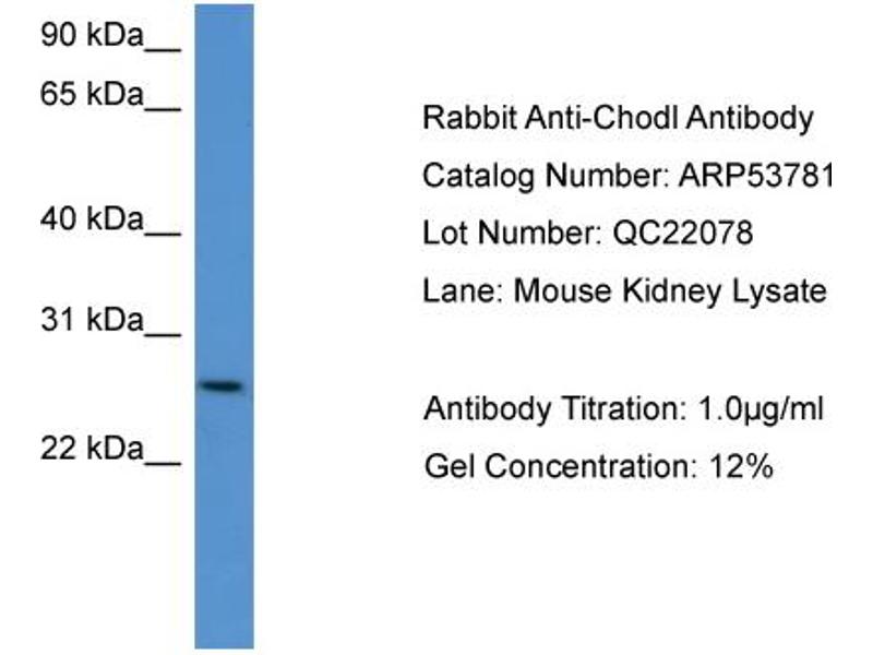 - This is a rabbit polyclonal antibody against Chodl. It was validated on Western Blot.