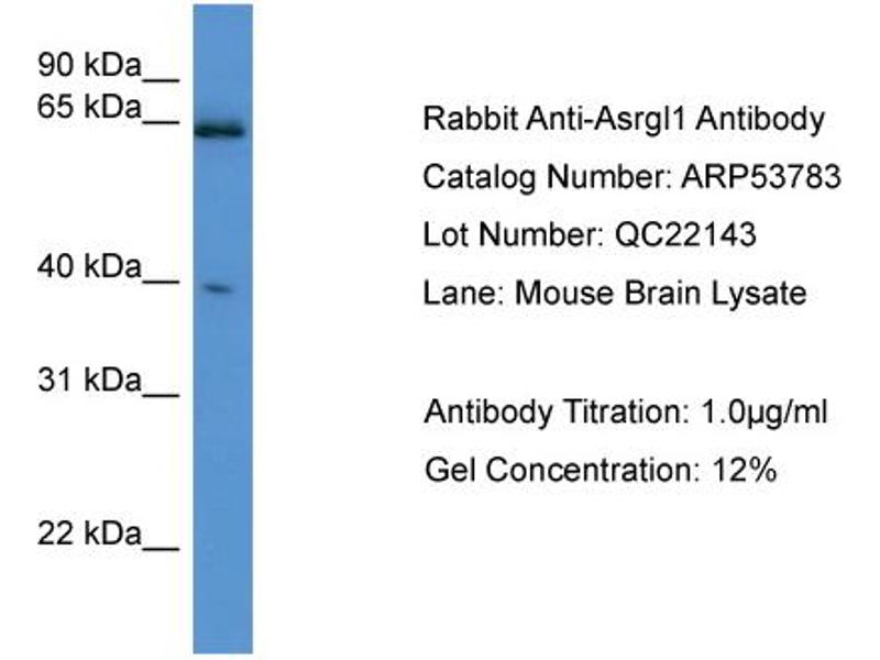 - This is a rabbit polyclonal antibody against Asrgl1. It was validated on Western Blot.