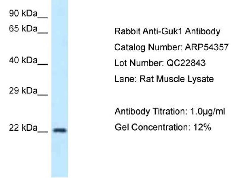 This is a rabbit polyclonal antibody against Guk1. It was validated on Western Blot.