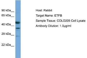 This is a rabbit polyclonal antibody against ETFB. It was validated on Western Blot.