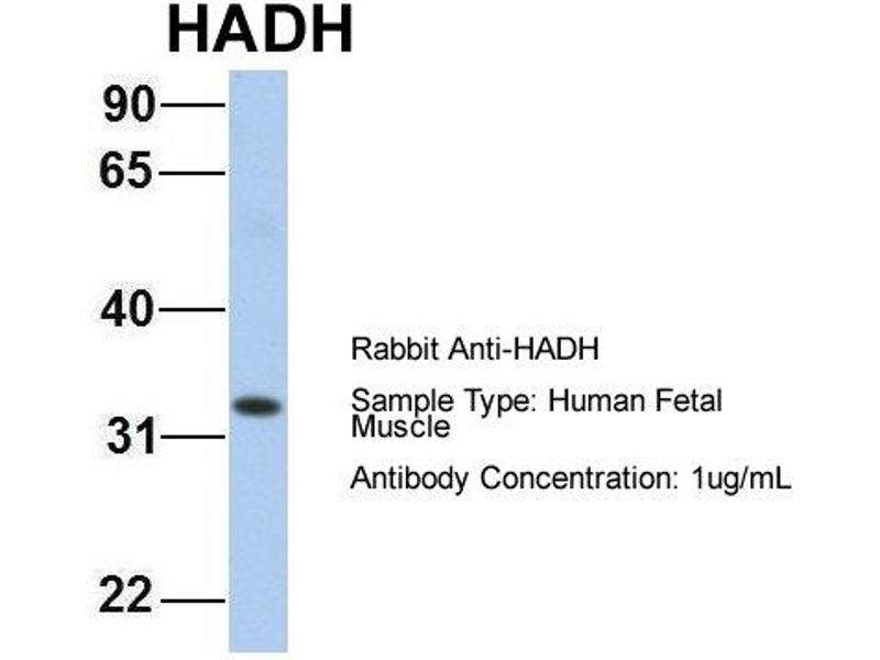 This is a rabbit polyclonal antibody against HADH. It was validated on Western Blot using a cell lysate as a positive control.