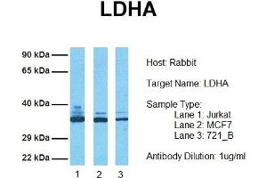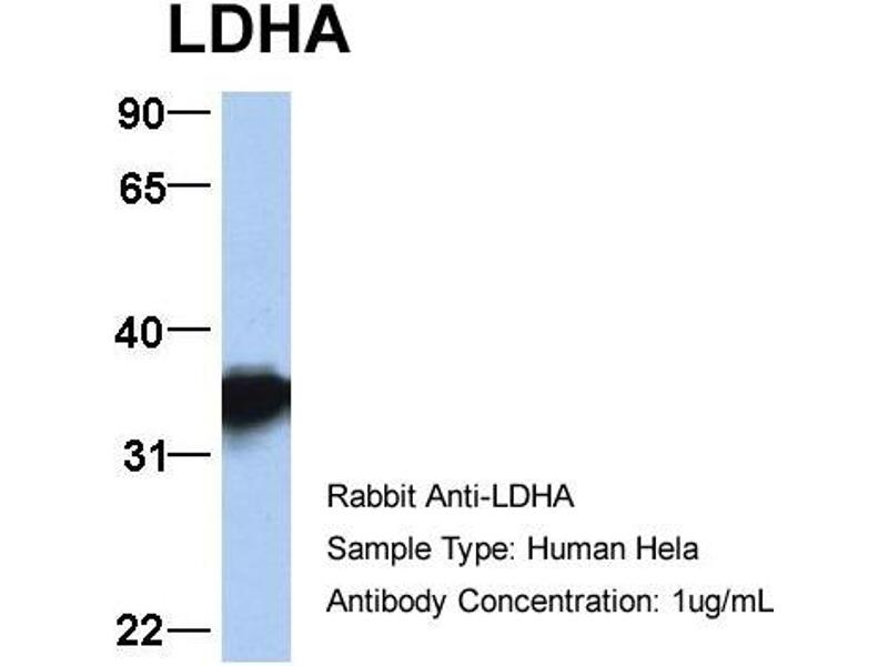 - This is a rabbit polyclonal antibody against LDHA. It was validated on Western Blot using a cell lysate as a positive control.
