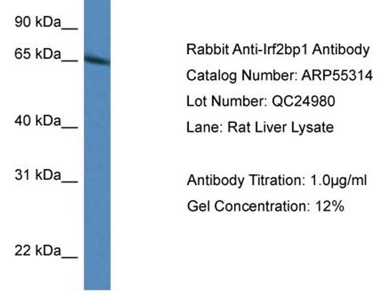 - This is a rabbit polyclonal antibody against Irf2bp1. It was validated on Western Blot.