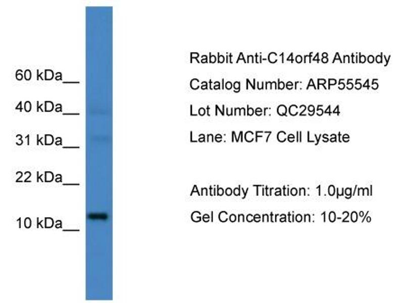 - This is a rabbit polyclonal antibody against C14orf48. It was validated on Western Blot.