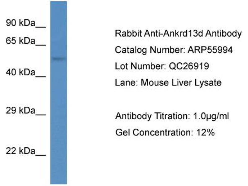 - This is a rabbit polyclonal antibody against Ankrd13d. It was validated on Western Blot.